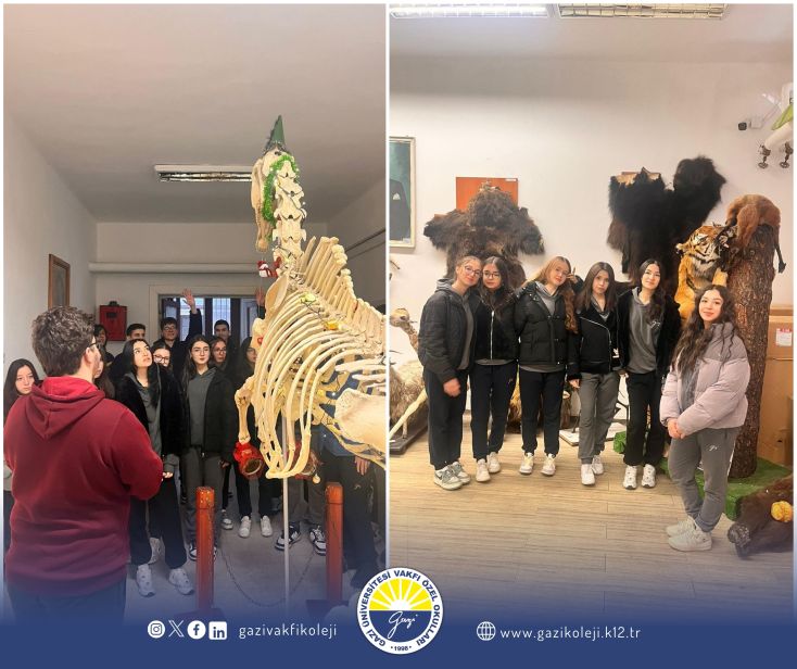 11. sınıf öğrencilerimizle birlikte Ankara Üniversitesi Veteriner Fakültesi Anatomi Müzesi’ne gerçekleştirilen gezide, öğrencilerimiz hayvan natomisine ait zengin koleksiyonları yakından inceleme fırsatı buldu. Müzedeki iskeletler, organ preparatları ve anatomik modeller sayesinde teorik bilgilerini somut örneklerle pekiştiren öğrencilerimiz, bilimsel gözlem ve akademik ortam deneyimi kazandı. Eğitici ve verimli geçen bu gezi, öğrencilerimizin biyoloji dersine olan ilgisini artırdı.
