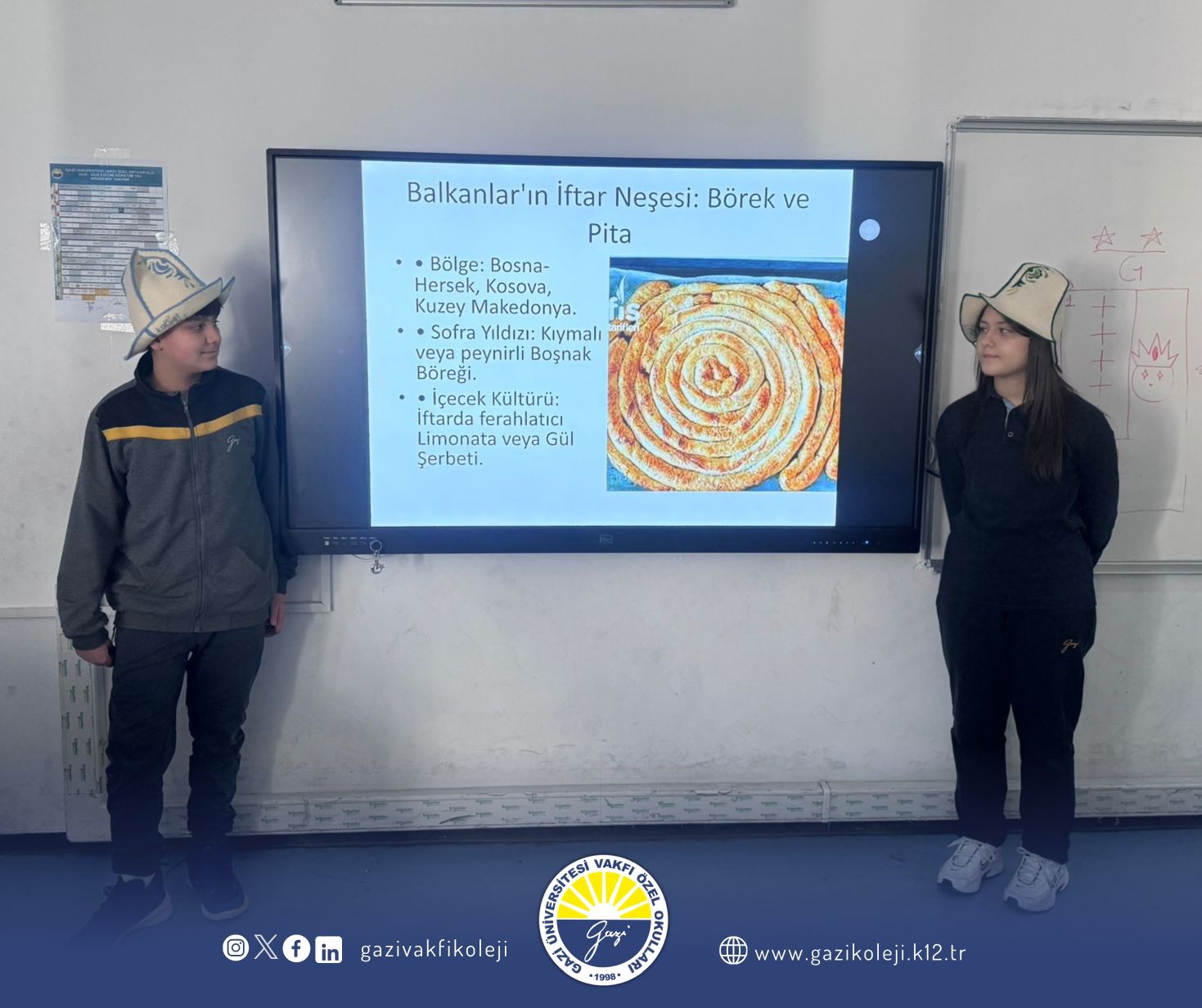 Okulumuzda “Dünyada Ramazan: Türk Dünyasında Ramazan Kültürü ve Yemekleri” adlı anlamlı bir etkinlik gerçekleştirildi. Etkinlikte öğrenciler, Türk dünyasında Ramazan ayının nasıl yaşandığını ve farklı coğrafyalarda hazırlanan geleneksel Ramazan yemeklerini tanıma fırsatı buldular.