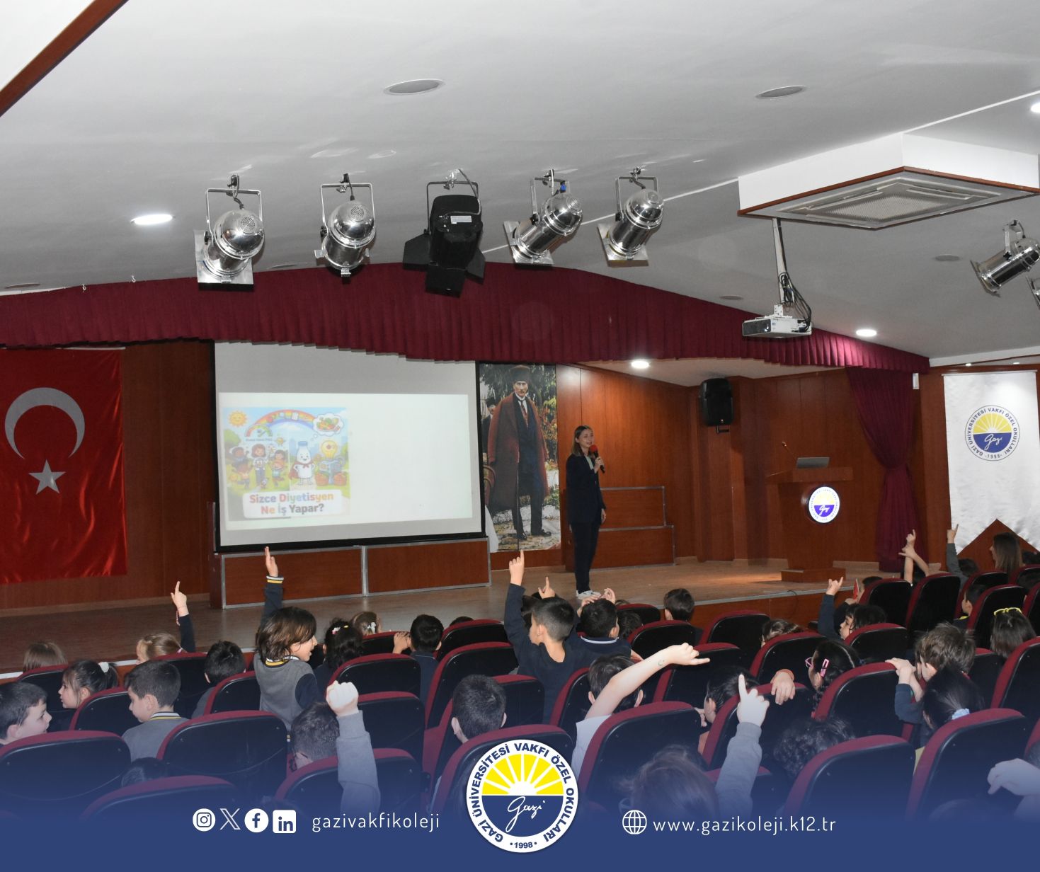 Gazi Üniversitesi Vakfı Özel İlkokulu Rehberlik Birimi tarafından yürütülen "Sağlıklı Yaşam" etkinlikleri kapsamında ve Yeşilay Haftası çerçevesinde, 1, 2 ve 3. sınıf öğrencilerimizle sağlıklı beslenme üzerine keyifli bir buluşma gerçekleştirdik.